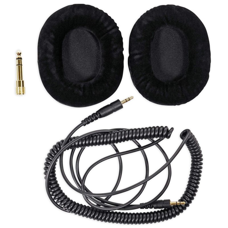 • Soft leather headband cover. Interchangeable leather and soft suede ear cups covers included. Detachable 51” coil cable made of 100% Oxygen Free Copper (158” fully extended). Gold plated 3.5mm connector. Gold plated ¼” adapter. Hard leather carrying case. Stainless steel headband frame and moving arms are durable and long-lasting