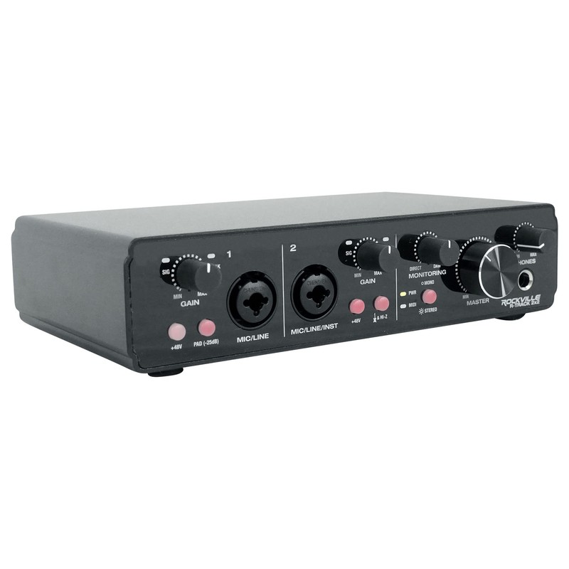 - What's in the Box: R-TRACK 2x2. User Manual. USB cable, Type A to Type B. Power adapter. Rockville R-TRACK 2x2 USB Computer Recording Interface with 2 Mic Pre’s. 24 Bit 192Khz high sampling rate. Licensed ASIO recording interface works perfectly with all the popular recording software’s. Built in USB interface will send CH1and CH2 separately to your favorite DAW. Interface will be identified and addressed as an external sound card in your DAW.