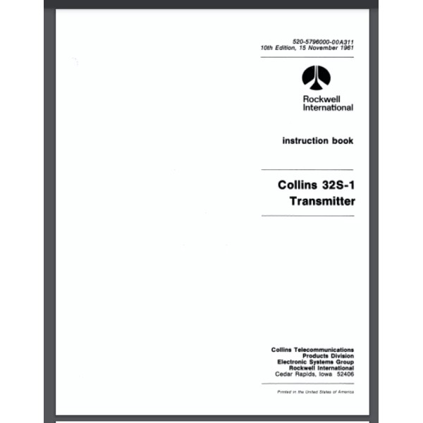 rockwell Collins 32S-1 transmitter 1961 instruction book 45 pages comb bound gloss cover