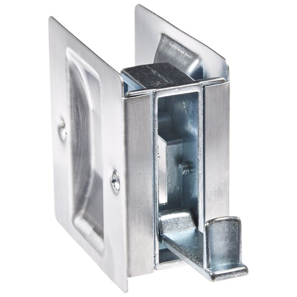 • Brass pocket door pull with a satin chrome plated finish for pulling open a sliding pocket door
