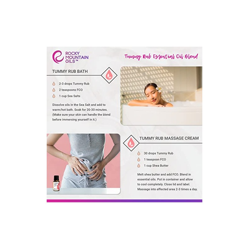 - Essential oil blend for digestion: Tummy Rub Essential Oil Blend has a soothing, minty-fresh, clean aroma; The blend combines Peppermint, Fennel, Juniper Berry, Ginger Root, Cypress, and Frankincense in a base of Fractionated Coconut Oil