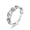 Rockyu Women's Ring, One Size Fits Most, Stylish, Blue, Zirconia, Flower Ring, English G, Openwork Carving, Adjustable Size, Amulet Ring, Sterling Silver, Hypoallergenic, For Lovers, Friends,