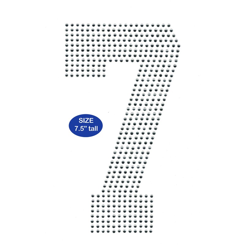 Rococo Designs 7.5" Rhinestone Iron on X- Large Sports Jersey Number Seven 7" Rhinestone Iron on Hotfix Transfer Number Bling DIY ~Free Star Decal Made in USA