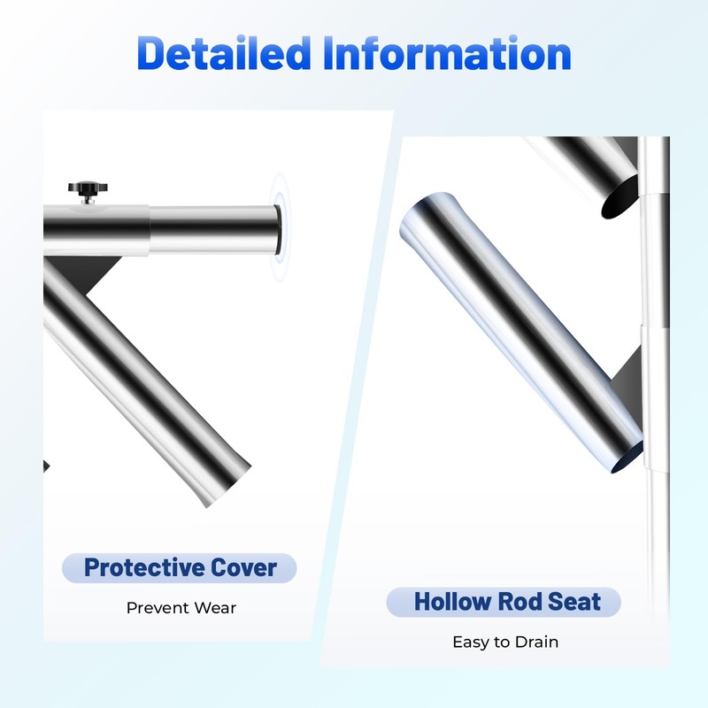 Rubber Inserts: The rubber inserts can protect your fishing rod from any abrasion of the stainless steel surface and can reinforce the base to prevent it from moving.