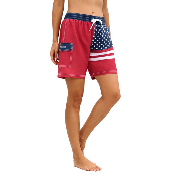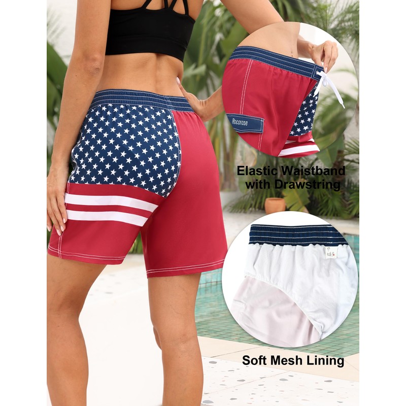 Rocorose Comfy Shorts for Women Loose Fit Quick Dry Drawstring Lifeguard Shorts with Soft Linning USA Flag XS