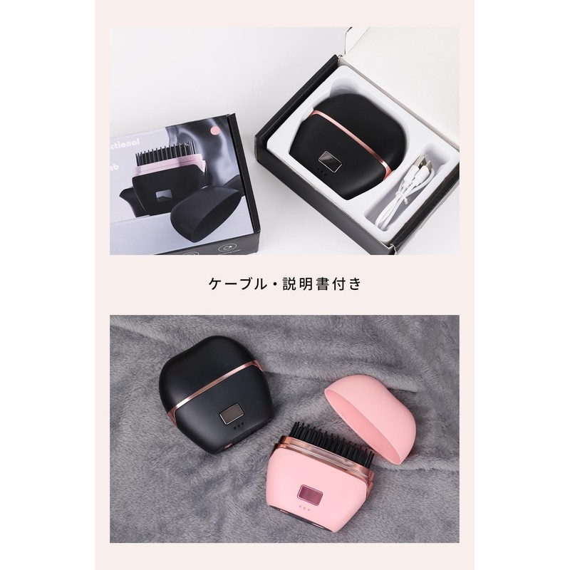 [Rocotto] ヘアアイロン ミニ ヒートブラシ コードレス ポケットヒートブラシ ヘアロン mini 140℃〜180℃ 3段階温度調整 マイナスイオン機能 火傷防止 自動電源オフ機能 軽量140g ストレート 内巻き ダメージ毛 細毛 普通毛 太毛 対応 (ブラック)