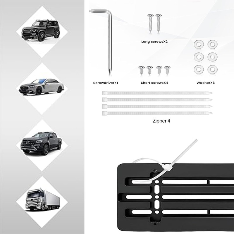 - 【Universal Fit for Cars, SUVs & Trucks】With a 12 x 6-inch front plate mount and included screws/bolts, this license plate bracket holder fits most vehicles seamlessly. Whether you drive a sedan, SUV, or pickup truck, installation is quick and hassle-free.