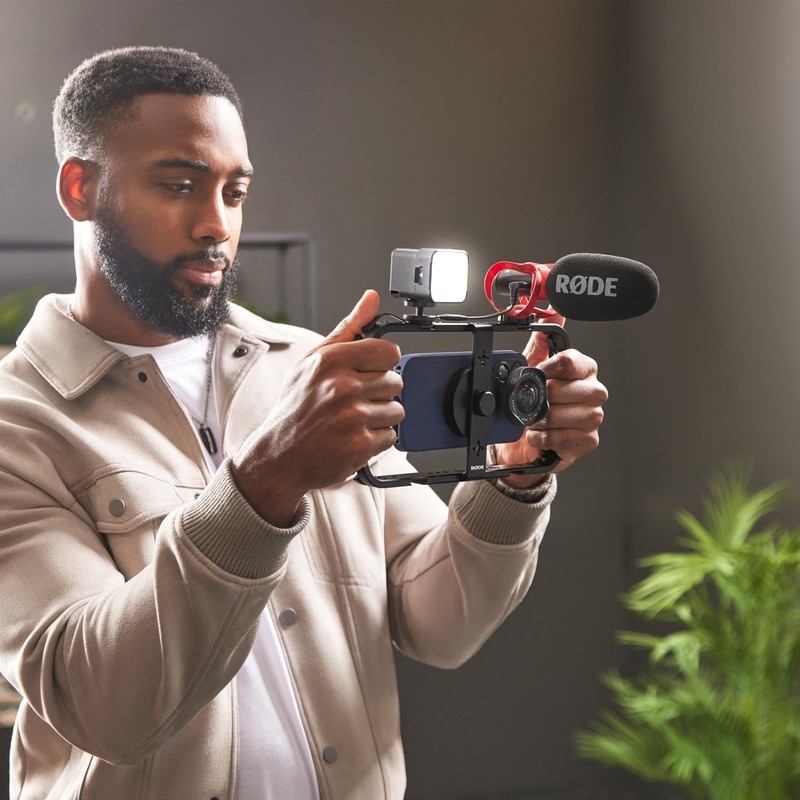 The Rode Phone Cage is a specially designed accessory that offers smartphone users a professional and stable solution for recording audio and video. Made of high-quality aluminium, the cage impresses with its robust and durable construction, which can withstand even intensive use. Filmmakers, journalists, vloggers and other content creators in particular benefit from the versatile applications offered by the Rode Phone Cage.