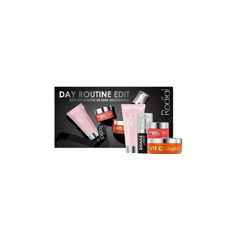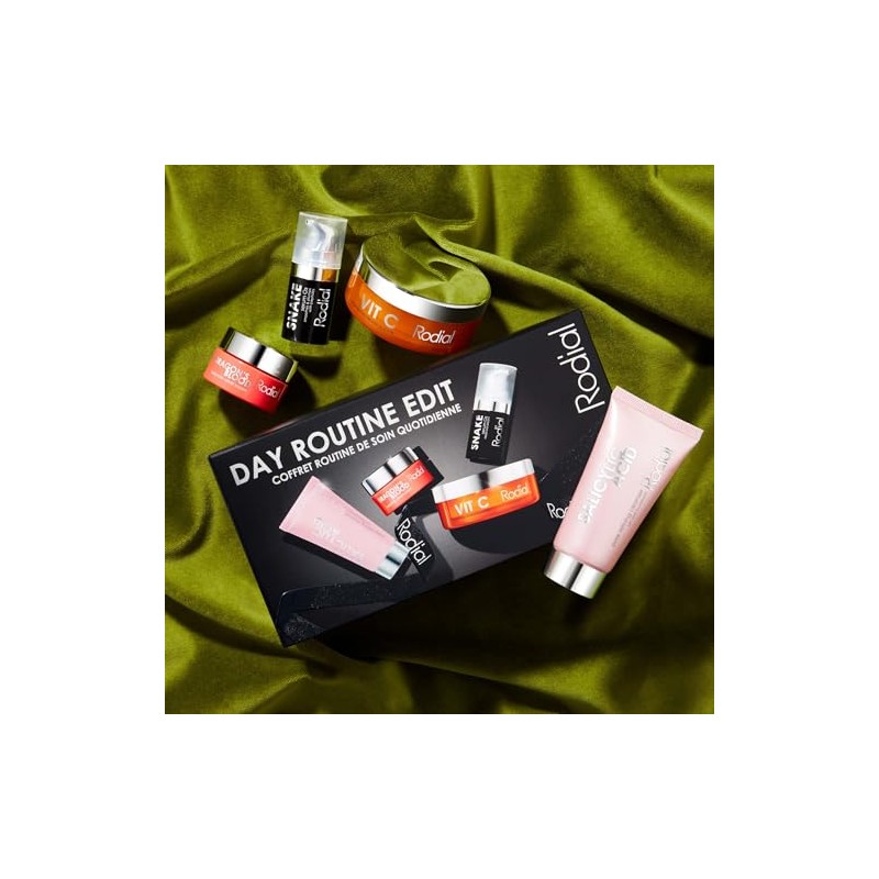 Rodial Day Routine Edit - Four-step Deluxe-Size Skincare Routine: Salicylic Acid Cleanser 20ml, Vit C Pads – 20 pads, Snake Serum- 5ml, Dragon’s Blood Velvet Cream – 15ml