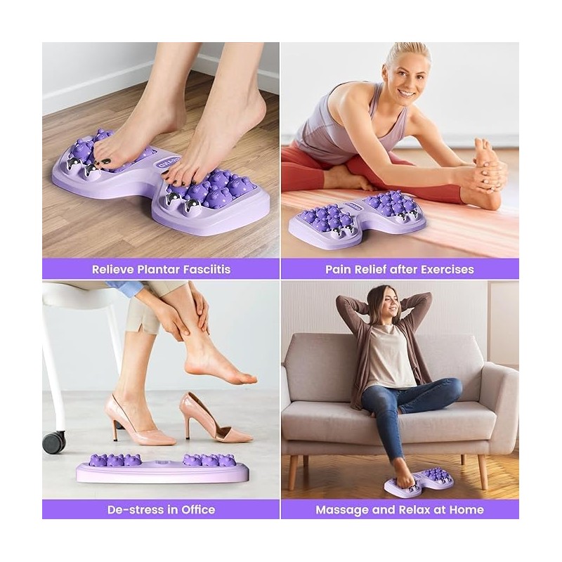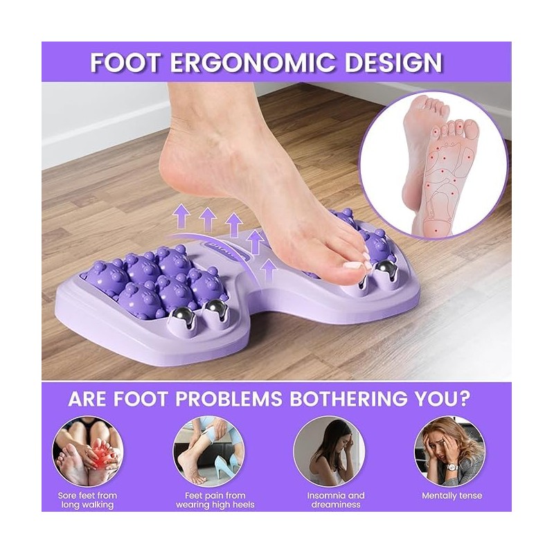 - Terapia de acupresión: Ya sea que sufras de fascitis plantar, talones adoloridos, arcos adoloridos o neuropatía, este resistente masajeador de pies de reflexología está aquí para aliviar las tensiones.