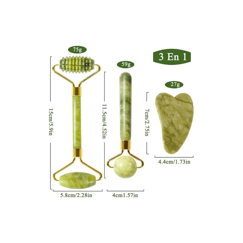 Rodillo de jade de dos puntas: 15x5.8 cm / 5.9x2,28 pulgadasRodillo de jade: 11.5 x 4 cm/4.52 x 1.57 pulgadas