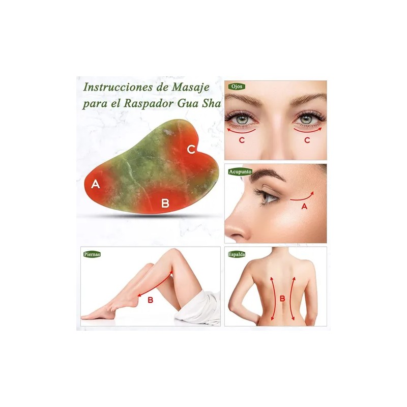 5. Use el masajeador de raspado Gua Sha para la cara, el cuello, los hombros, los brazos, la cintura, la espalda, las piernas y el cuerpo.