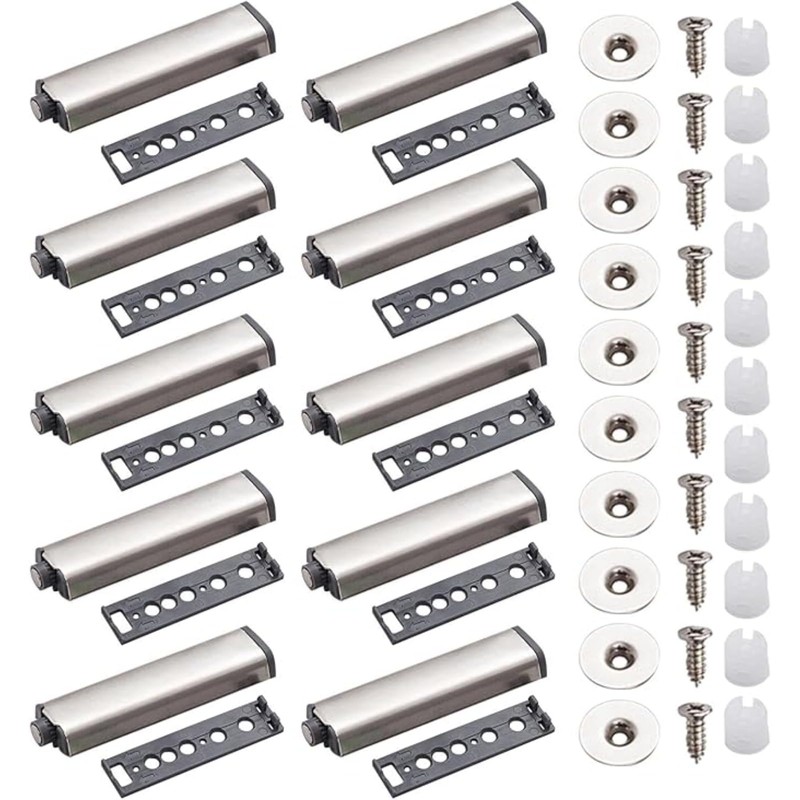 RODISHOMM Pack of 10 Pressure Door Openers - Push to Open Magnetic Catch for Furniture, Drawers & Cabinet Doors, Tip-On Door Opener with Magnetic Mechanism, Silver