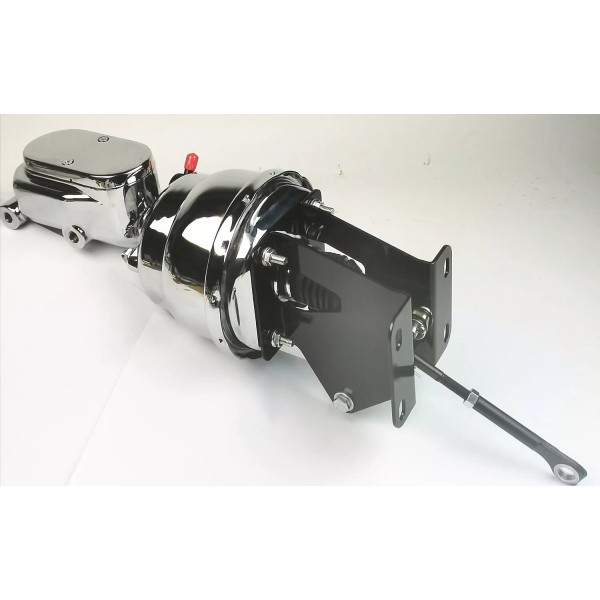 8" dual diaphragm brake booster and master cylinder with firewall brackets. This is a direct bolt on to the firewall and will connect to your brake pedal.
