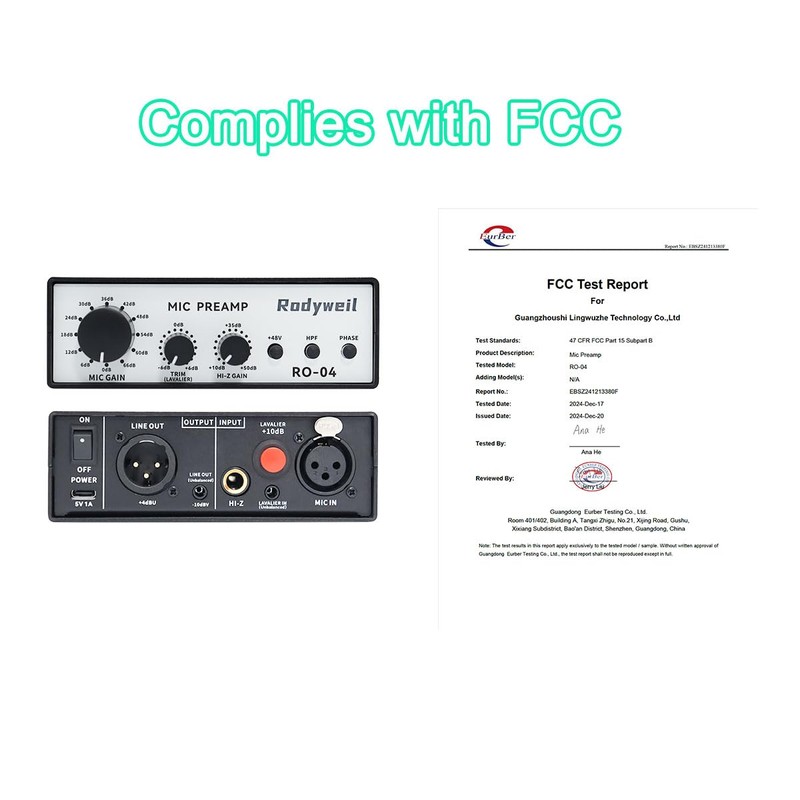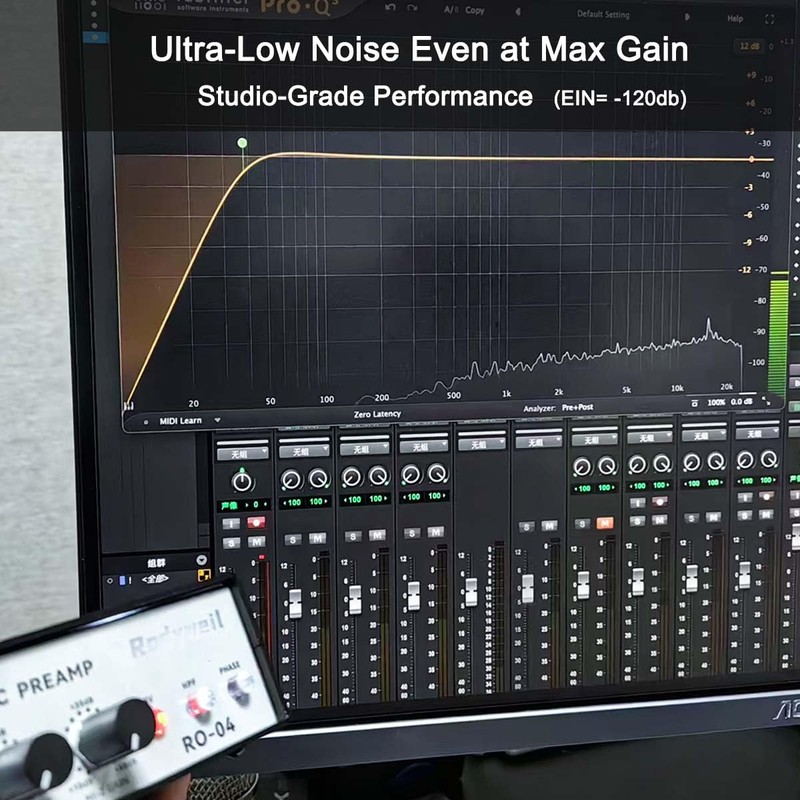 - 5. To meet the diverse needs of buyers, the RO-04 preamp is designed with a high-impedance input for instruments, built-in 48V phantom power for condenser microphones, a maximum gain of 72dB for dynamic microphones, and 5V power supply support for electret lavalier microphones. It also features HPF (high-pass filter) and PHASE functions to enhance the user experience. Additionally, we provide a 5-year warranty to ensure buyer satisfaction and protect their rights
