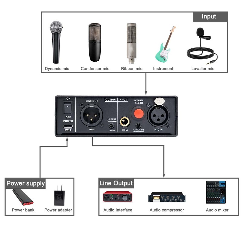 - 4. Many buyers reported difficulty finding a suitable preamp for lavalier microphones, which resulted in low audio levels during Zoom meetings. To address this, we specifically designed the RO-04 preamp with a dedicated lavalier microphone input for electret condenser lavalier mics, ensuring that users of lavalier microphones can also enjoy an excellent audio experience