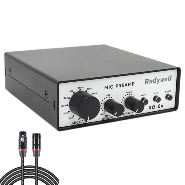 Rodyweil RO-04 Pro Mic Preamp 0~72db Adjustable Gain Boost with Hi-Z, 48V, HPF, Phase for Dynamic Condenser Ribbon Microphone, Guitar, Bass Recording and Podcasting
