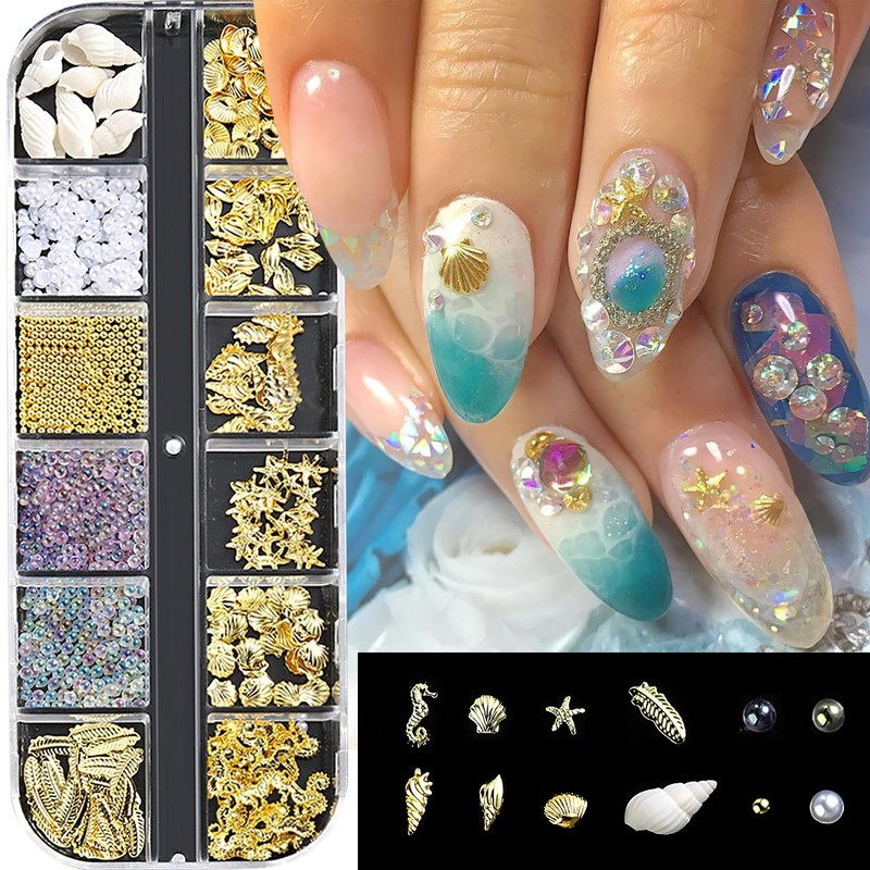 Quantity: 12 Grids Seashell Starfish Nail Charms