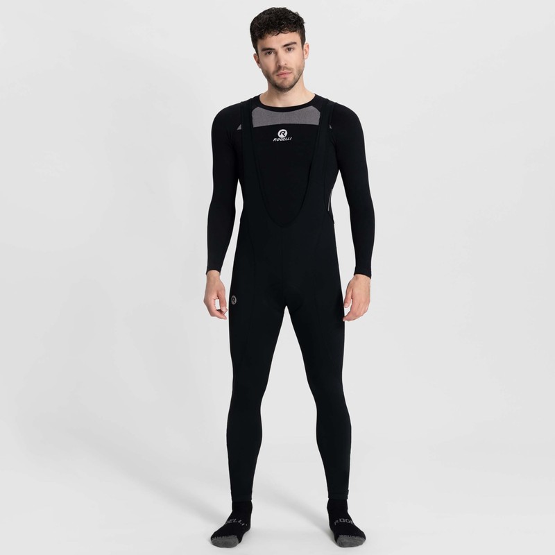 Rogelli Core Men's Cycling Shorts - Long Cycling Shorts with Straps - Black, black