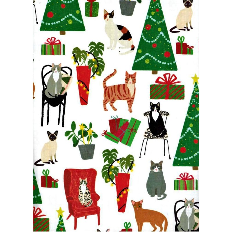 roger la borde Fireside Christmas Cats Reversible Flat Gift Wrapping 2 Sheets 19 in x 27.5 in