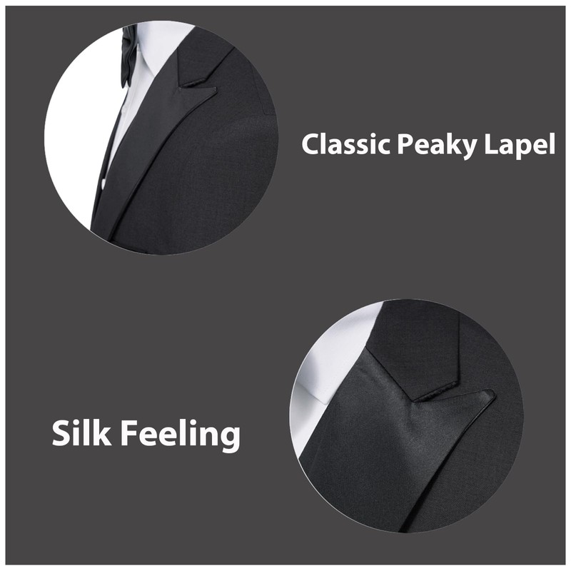 • CLASSIC DESIGN - Very typical & classic Tuxedo type with silk feeling black peak lapels, classic ticket pocket design and shawl lapel double-breasted vest is vintage-inspired, formal and stylish.