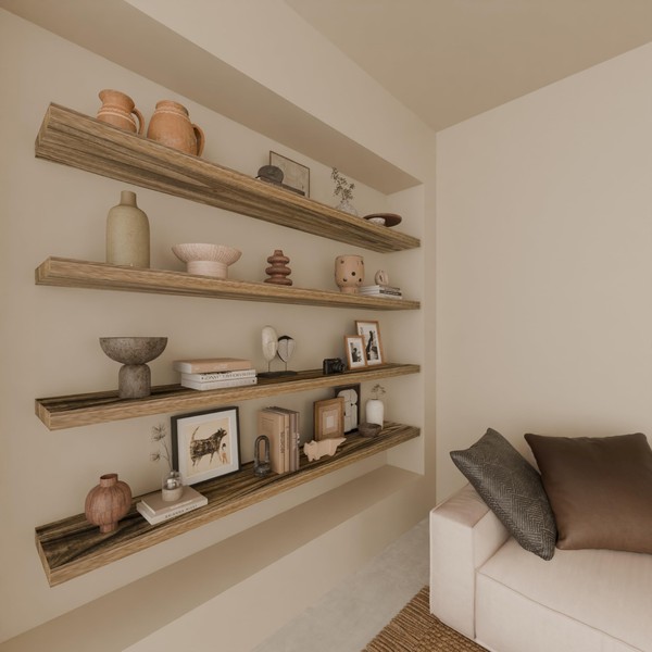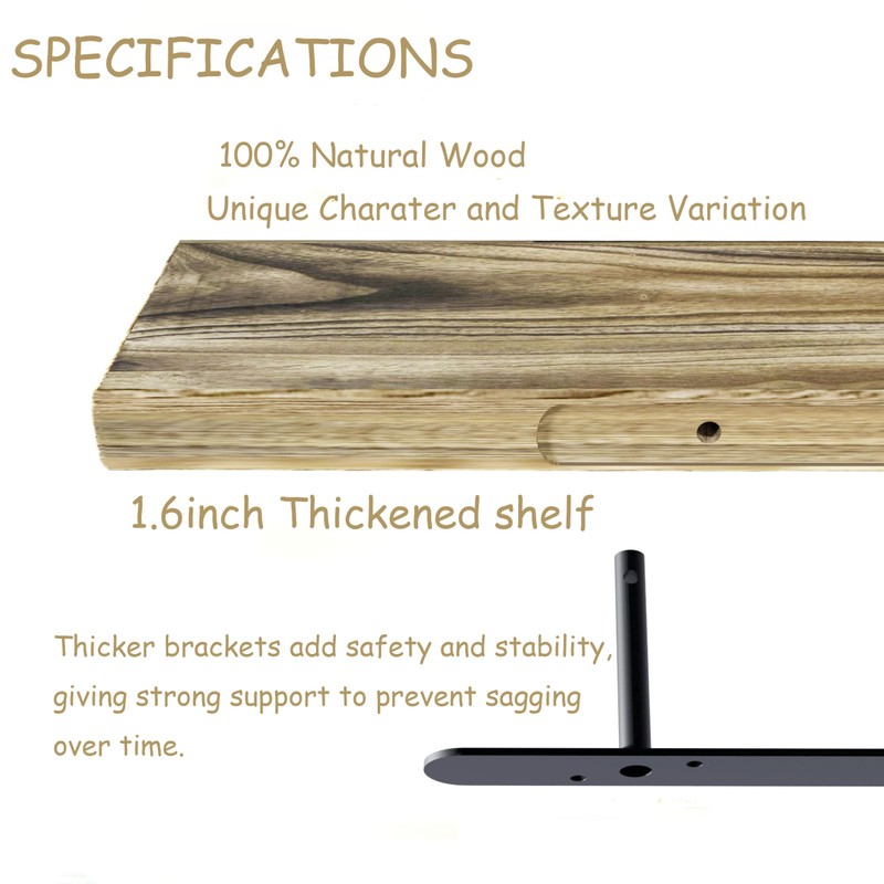 - 【𝐋𝐨𝐧𝐠 𝐬𝐡𝐞𝐥𝐟 𝐰𝐚𝐥𝐥 】Each wood shelves for wall measures 48” long x 7.87” deep x 1.6" thick .Our wood wall shelves provide ample space for both storage and decoration. Our wooden floating shelves for wall undergo a meticulous process of carbonization and fumigation, resulting in a non-toxic and harmless treatment that enhances the wooden shelf 's resistance to acidity, heat, and ease of cleaning.