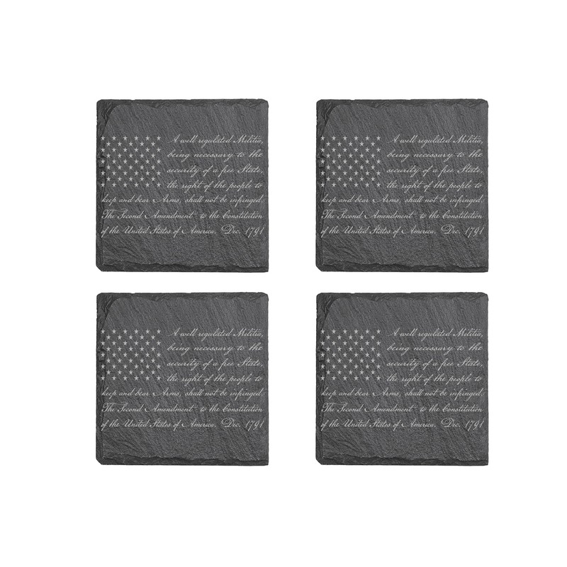 - 2nd Second Amendment Coaster Set of 4 Makes a Great Gift To Any Patriotic American or Military Veteran Comes With Decorative Holder