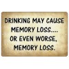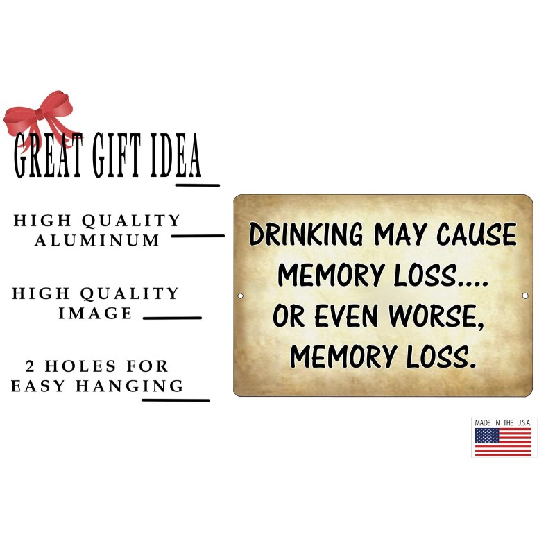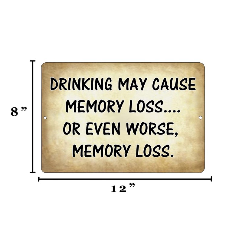 Funny Drinking May Cause Memory Loss or Even Memory Loss Drunk Beer Novelty Metal Sign Make a Great Sarcastic GiftPerfect Wall Decoration For a Man Cave Bar or Garage Shop Home Office Work12" x 8" Aluminum Sign Indoor Or Outdoor Decor Beer Drinking Drunk Alcohol Bar Beer Sign2 Holes For Easy Hanging Perfect Gift For Sarcastic Friend Co Worker Him or Her Men or WomenProudly Made In The USA
