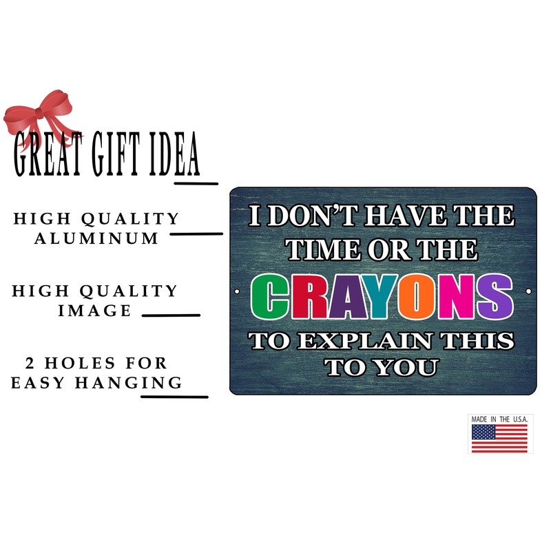 • Funny Novelty Metal Sign Make a Great Sarcastic Gift I Don't Have The time or The Crayons To Explain This to You