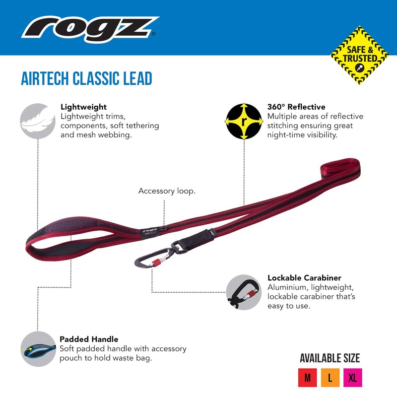 Rogz Airtech Ultra Lite Dog Lead, Nightsky Black, Medium