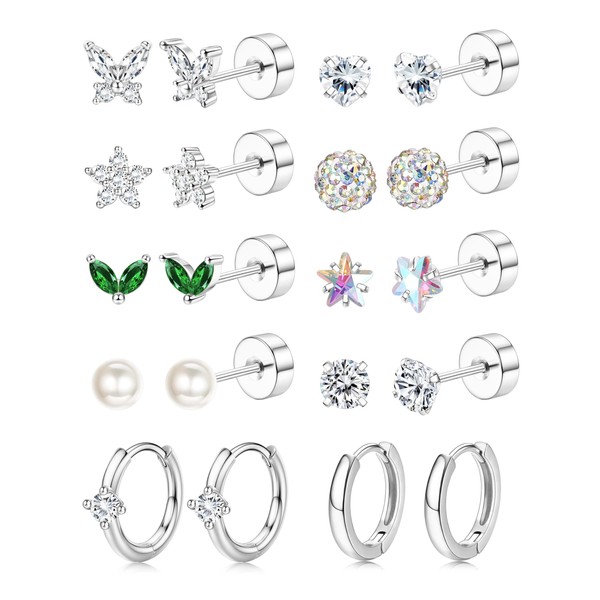 - 【10er-Set Ohrstecker & Mini-Hoops im Trend-Look】 10 vielseitige Designs inkl. Zirkonia-Stecker, Perlen-Crews und Tier-Motive (Herz, Stern). Kombinierbar für individuelle Styling-Akzente