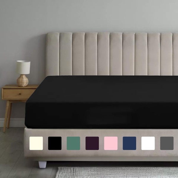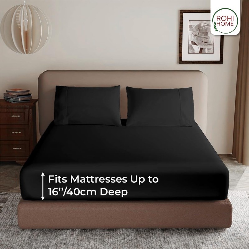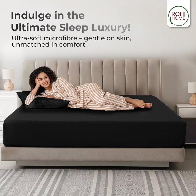 Rohi King Size Fitted Sheet 100% Microfibre – 16'' (40cm) Extra Deep Fitted Sheet with All Around Elastic – Ultra Soft, Hypoallergenic & Durable Bed Sheet – Bottom Sheet (Black – 150 x 200cm)
