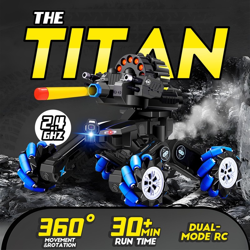 - 【Drifting Wheels Design】The remote control tank car features 4 upgraded mecanum wheels, each with 9 small pulleys for versatile directional movement. With a powerful motor and four-wheel drive, the RC car can move in all directions and perform 360° rotations. This design enhances flexibility and allows the car to keep going even after accidental collisions. It excels on challenging terrains, providing an exceptional outdoor racing experience.