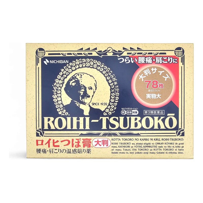 Es una versión grande, con un diámetro de 3.9 cm, aproximadamente el doble del tamaño de los parches ROIHI-TSUBOKO regulares, lo que lo hace adecuado para áreas más amplias como la espalda y la cintura.