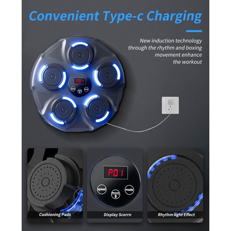 - Strengthen Your Body and Release Stress: Music punching machine supports Bluetooth music, you can choose your favorite songs during boxing workout. Surround speakers and cool lights keep you immersed while training. The maquina de boxeo musical pared can improve your reaction speed and body coordination. Boxing music workout machine can also help people with a variety of physical and mental stress issues vent their stress. Let them box while listening to music.