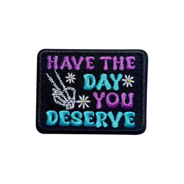 ROISEPOSIE Have The Day You Deserve Patch, 3 Inches Iron On/Sew On Embroidered Applique Fabric Hand Skeleton Patches for Clothes Backpacks Hat Jeans, Funny Sarcastic Embroidery Patches for Adults