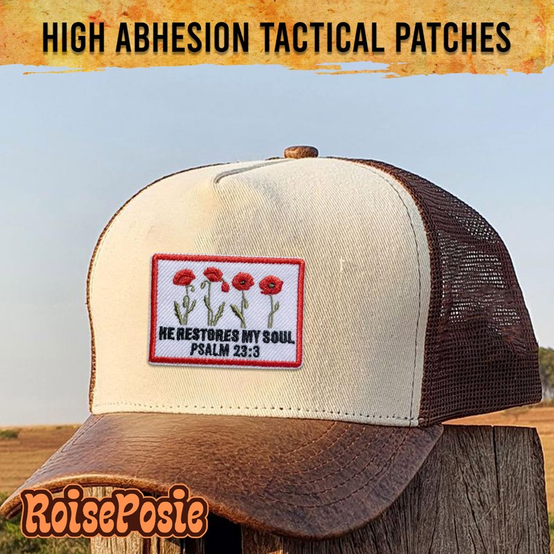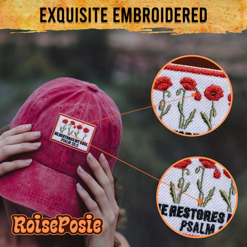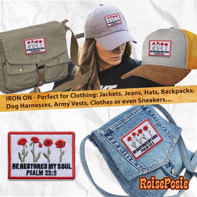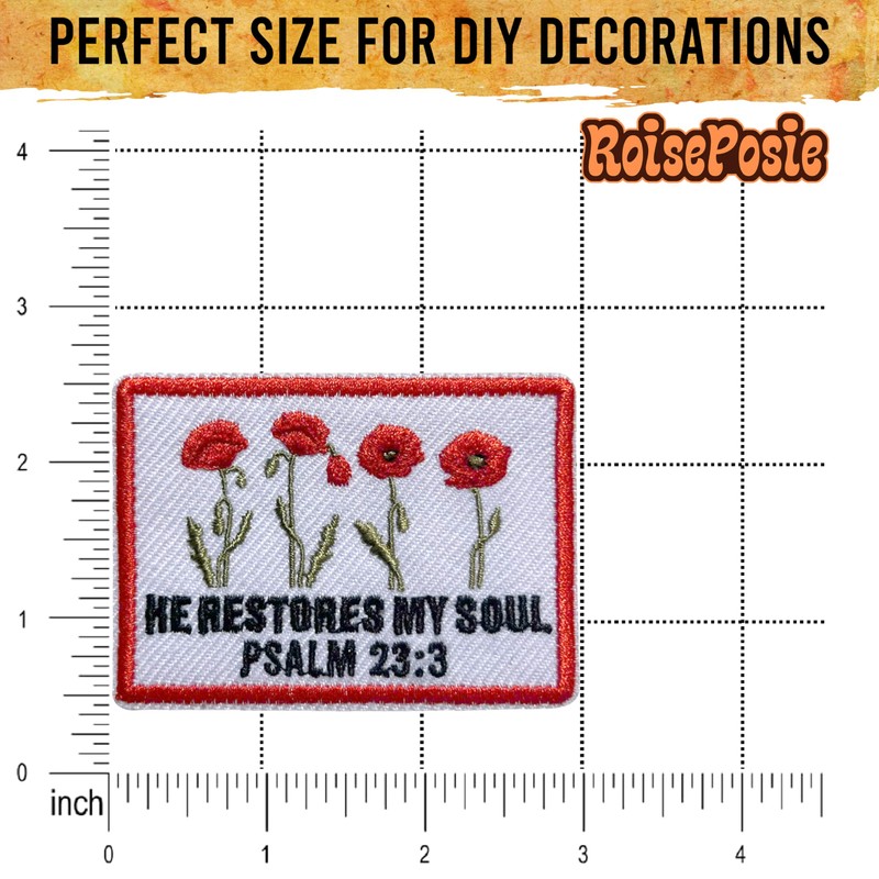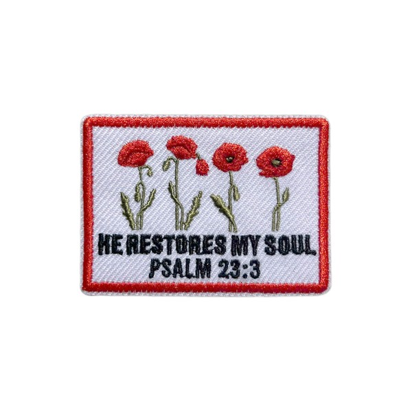 ROISEPOSIE He Restores My Soul Patch, Religious 3 Inches Iron On/Sew On Embroidered Applique Fabric Bible Psalm 23:3 Patches for Clothes Backpacks Hat Jeans, Catholic Embroidery Patches for Christians