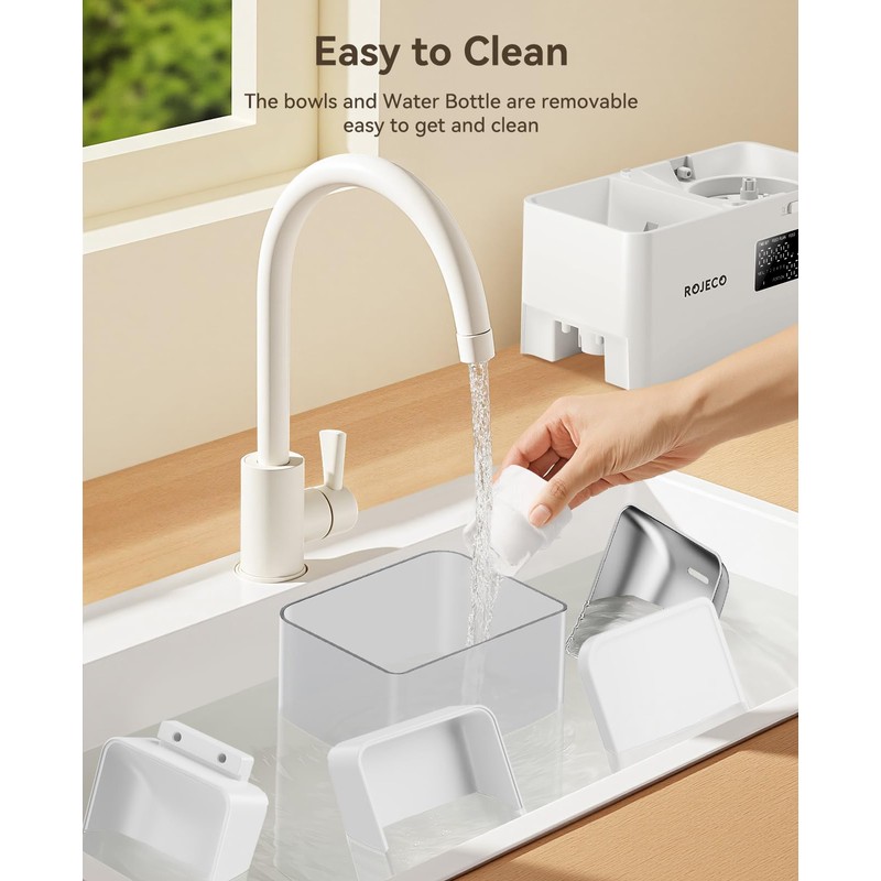 Rojeco 36Cups/8.5L Pet Automatic Cat Feeder and Gravity Water Dispenser,Stainless Steel Bowls 2-in-1 Set Large Capacity 5L Food Feeder and 3.5L Water Fountain for Cats,Pets,Small Dogs,Puppies,Kittens