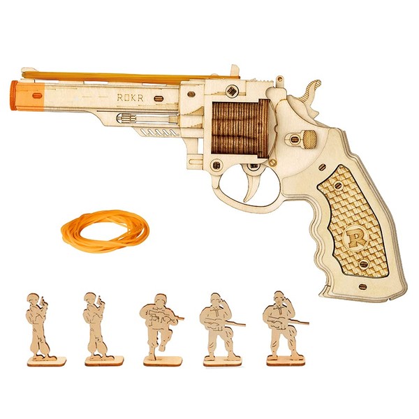 ROKR 3D Wooden Puzzle Self Assemble Game Toys Mechanical Gun Model with Villains Targets & Rubber Bands Bullets for Teens, Adults