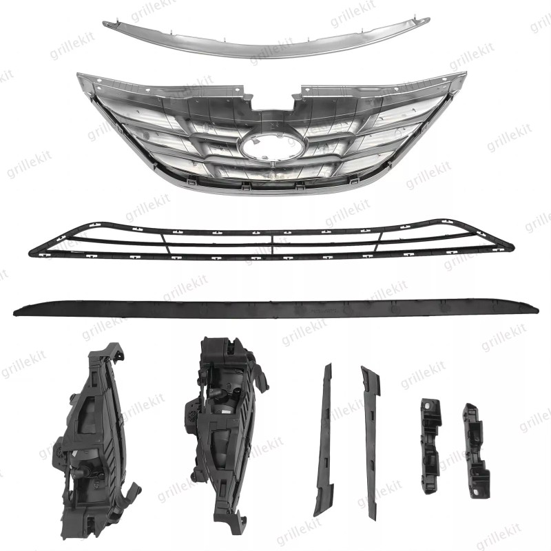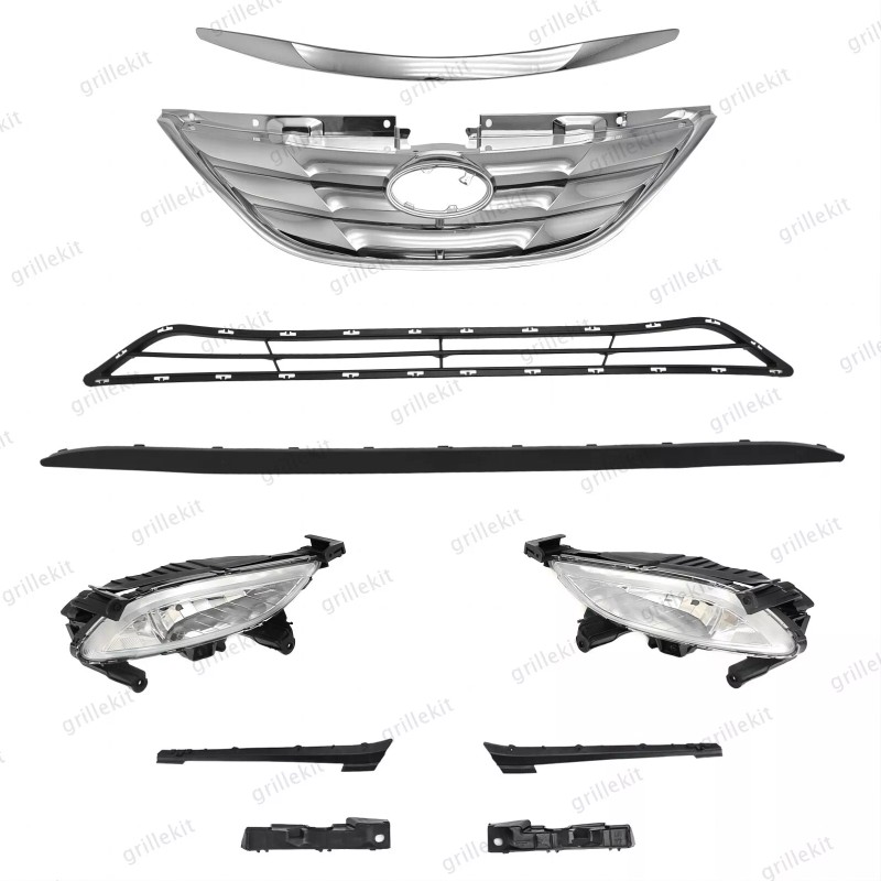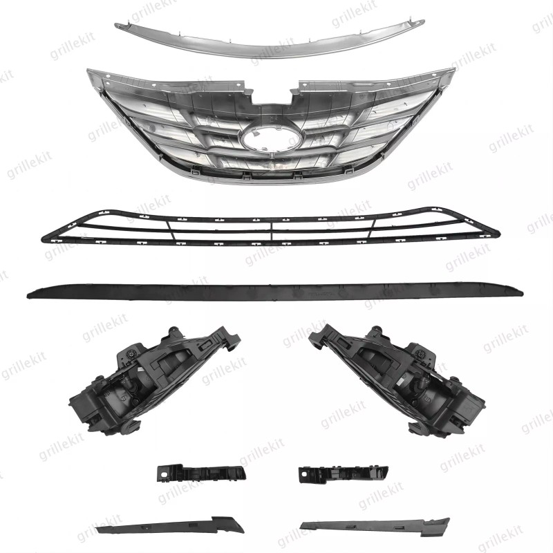 ROKY 10PC For Sonata 2011-2014 Front Grille Mesh Fog light Bumper Side Brackets Kit