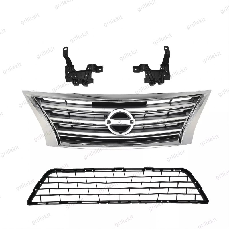 ROKY 11PC For Sentra 2013-2015 Front Chrome Grille Mesh Fog lights Bezel Brackets Kit