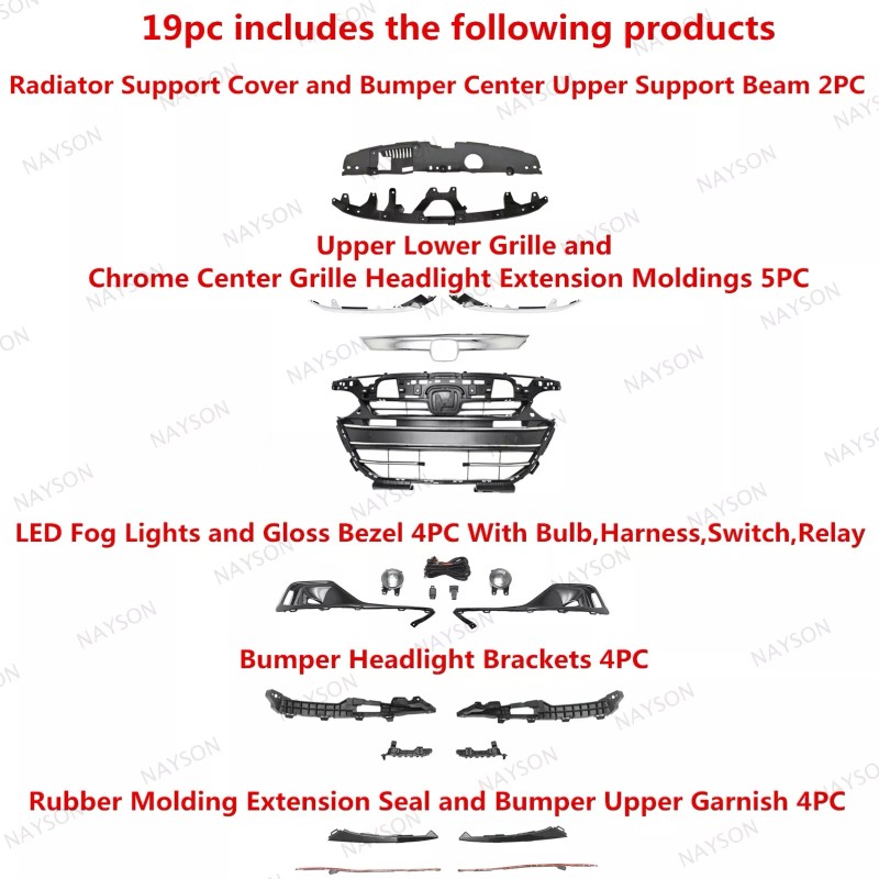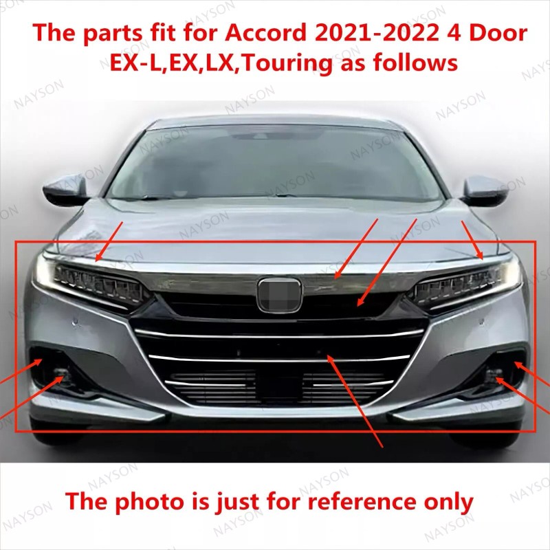 ROKY 19PC For Accord 2021-2022 Front Chrome Grille Molding Fog lamp Headlight Bracket