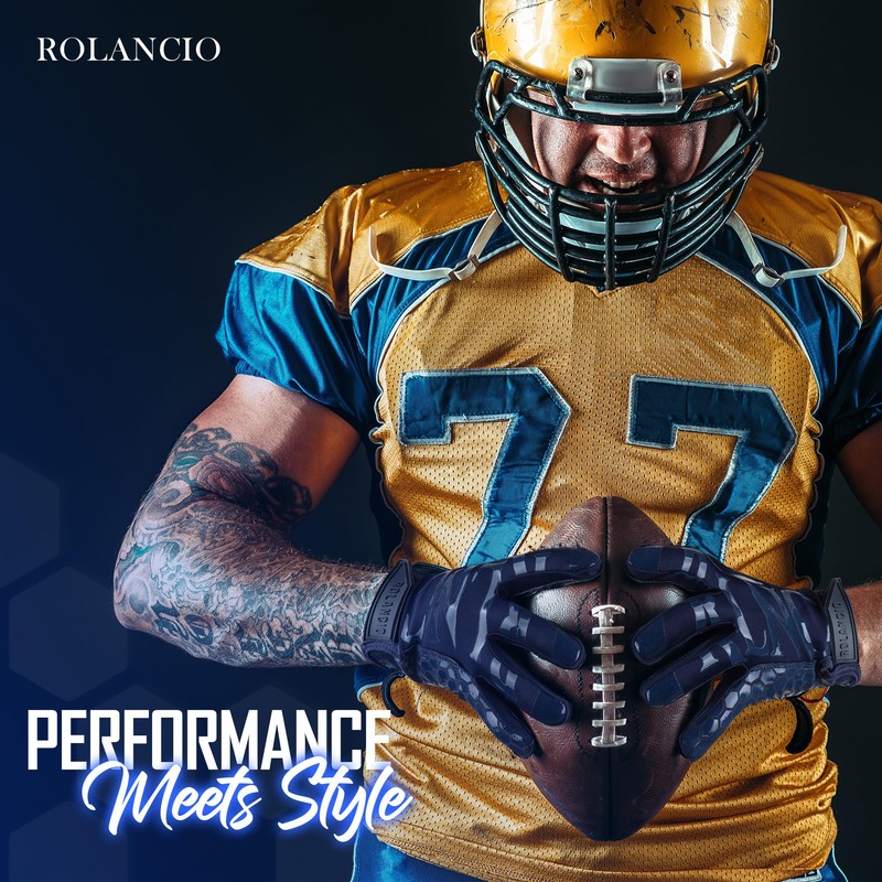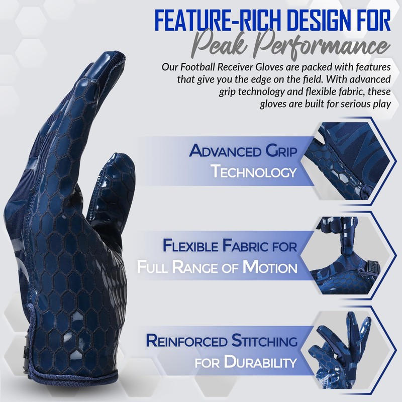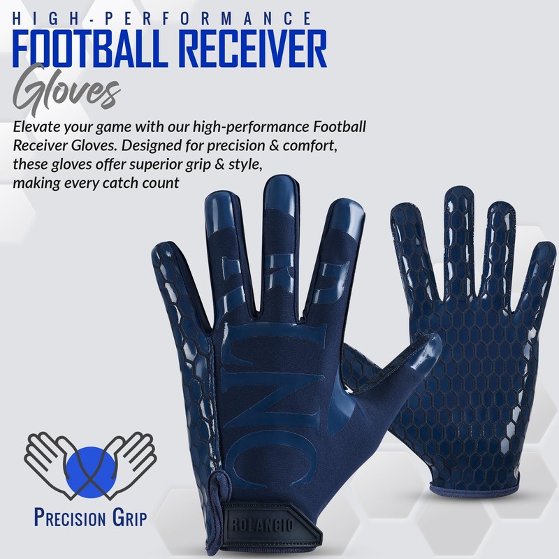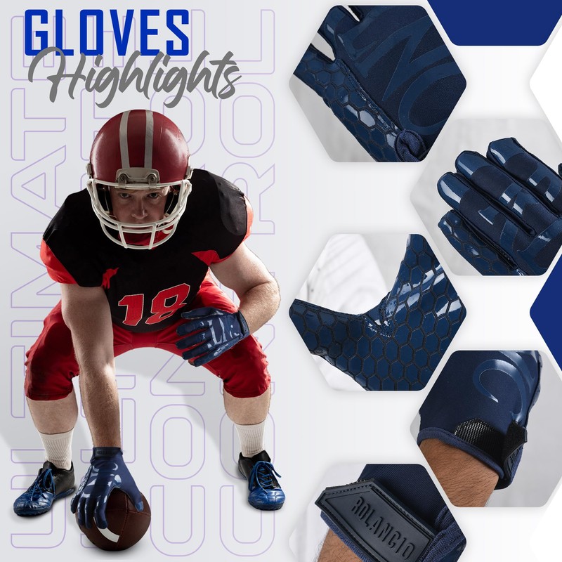 ROLANCIO Football Gloves (Navy Blue, Large)
