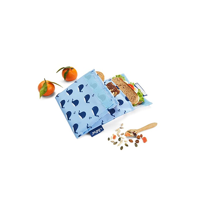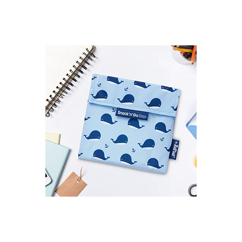 Roll'eat ® Reusable Sandwich Holder, Eco-Friendly, BPA Free, Sandwich Holder, Whale Snack'n'Go Duo Animals