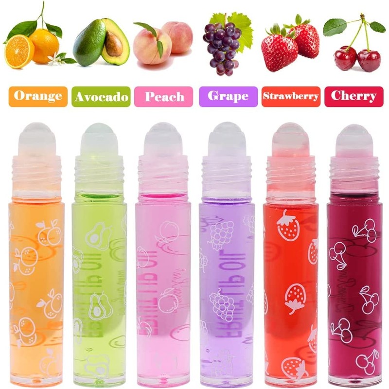 Roll-on Lip Gloss, Fruit Lip Gloss, Roll On Lip Gloss for Girls, Fruit Flavoured Moisturising Lip Oil, Clear Colourless Liquid Lipstick, Long Lasting Moisture for Lips (6 pcs)