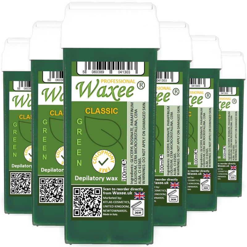ROLL-ON WAX CARTRIDGE 100ml, roller, hair removal wax, depilatory, refill (6 x 100ml roll-on wax cartridge, Green)