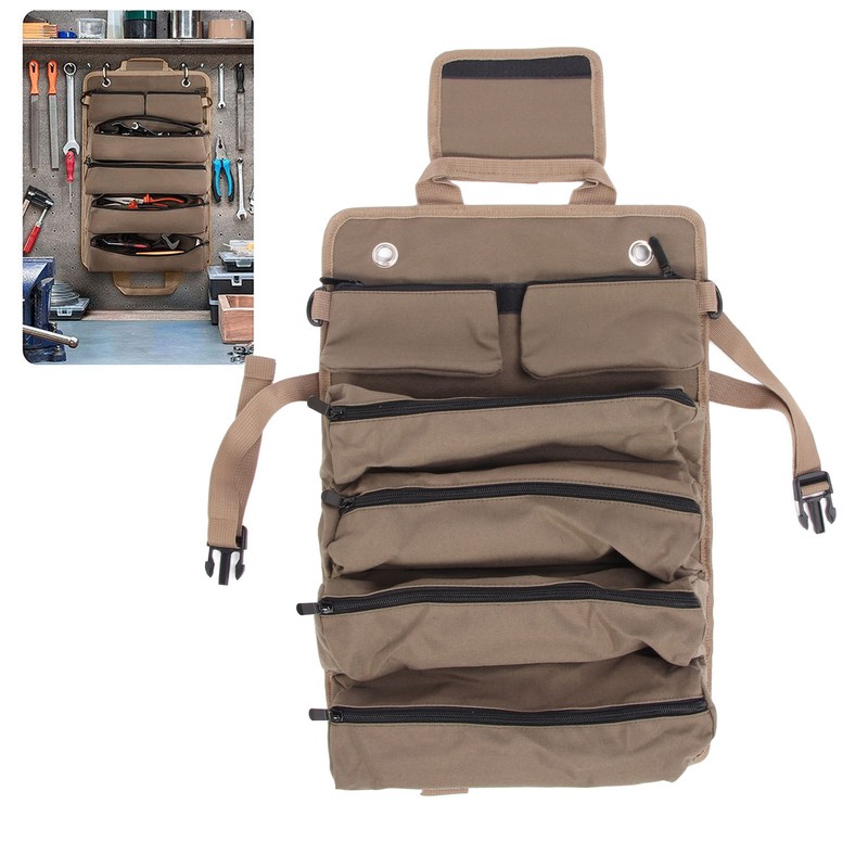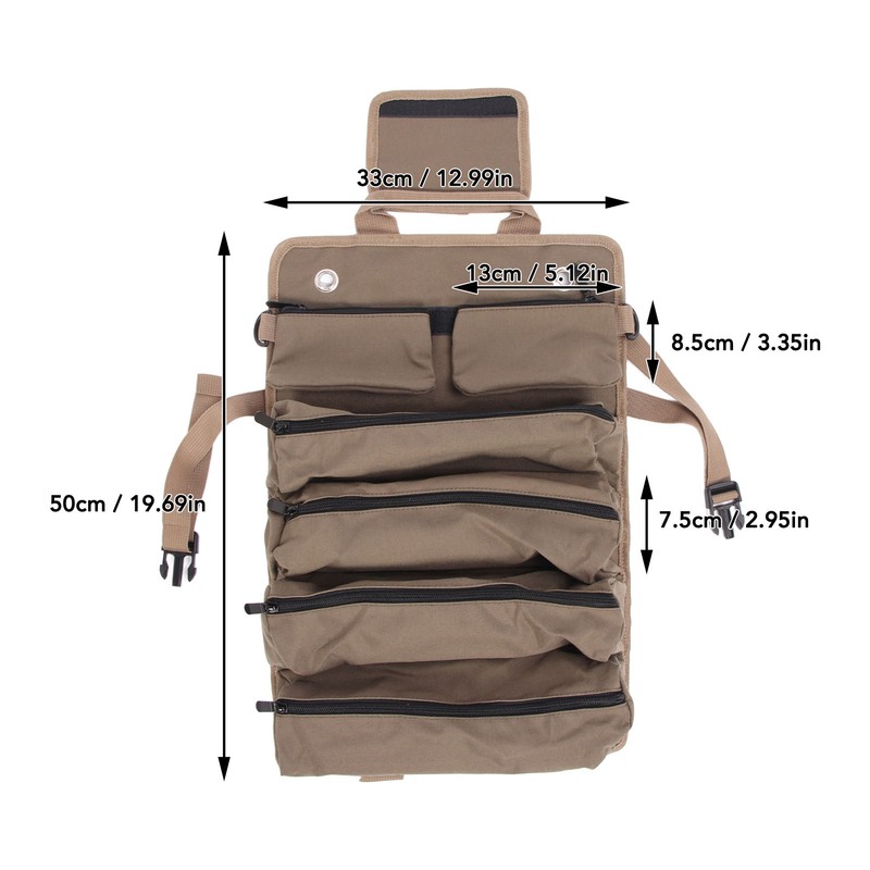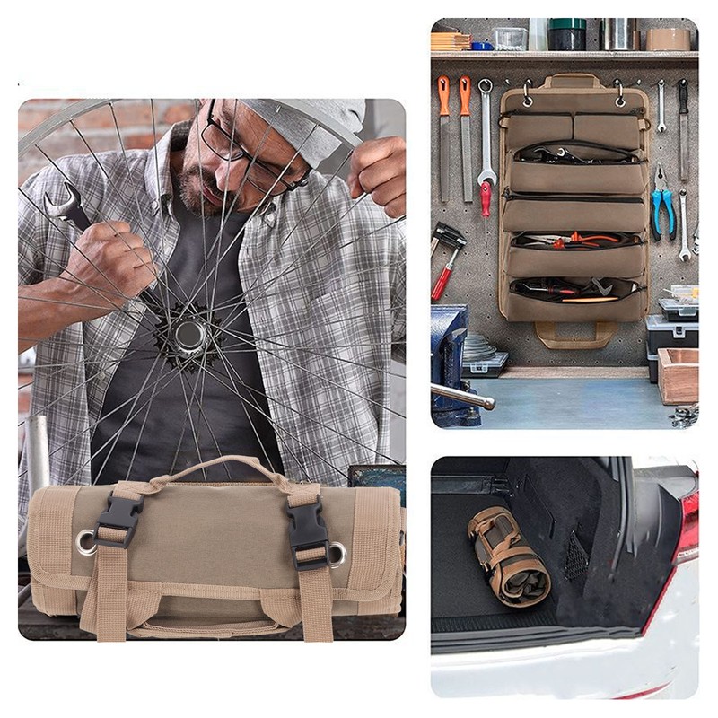 1、[Organized Tool Storage] This multifunctional tool bag keeps your tools and accessories neatly organized, minimizing the time spent finding what you need. 2、[Heavy Duty Materials] The roll tool bag features rust prevention zipper, premium strap and buckle, waterproof, oil proof, and tear resistant Oxford fabric for extended usage. 3、[Space Saving] The tool pouch organizer features a roll up design to save space, with convenient, comfortable handle and strap for easy transportation. 4、[Keep Your Tools Organized] Maintain your tools and accessories in order by storing them in this compact tool roll, can be hung in your garage or workshop. 5、[Multi Purpose] Perfect as a boat, car, motorcycle repair tool roll, or an emergency kit tool bag, adding flexibility and functionality to all your repair and maintenance tasks.