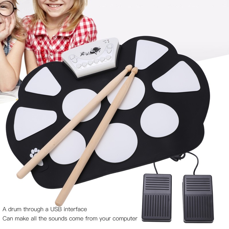 Roll Up Drum Kit 9 Pads Portable Electronic Drumsets Drums Practice Pad for Beginner Kids