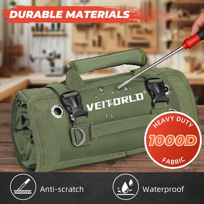 - Upgraded Sturdy Material: The tool roll bag is crafted from high-quality 1000D material, offering waterproof, and wear-resistant protection; Designed for durability, it features rust-proof zippers and precision stitching for long-lasting use