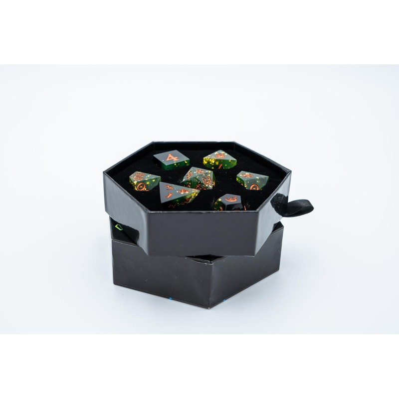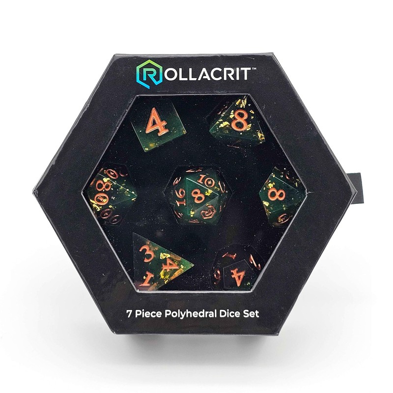 Rollacrit Sharp Edge Resin 7 Piece Dice Set - Sharp Edge Polyhedral Dice for Dungeons and Dragons RPG MTG Table Games - Ideal for Tabletop Games, D&D, TTRPG, and Roleplaying Games (Bog Witch)